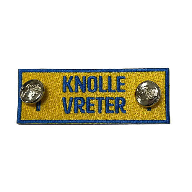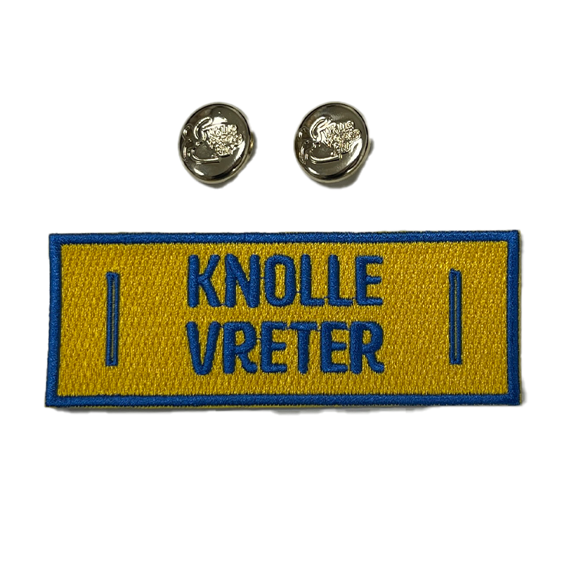 Embleem voor op je bovenarm. De knoopsgaten zijn kun je eenvpoudig opensnijden voor gebruik met bijgevoegde originele knollevretersgat knopen, Dit embleem is ook voorzien van strijklaag en kan daardoor ook zonder knopen op je jasje gestreken worden (advies is om altijd ook met draad vast te zetten, Bij het opstrijken kunnen de knoopsgaten dicht blijven.
